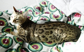 Salsa ist eine wahre Schönheit! Sie hat eine wundervolle interessante Zeichnung und eine warme Grundfarbe. Sie ist vorsichtiger als der Rest der Sippe, kommt aber sehr gerne und ausgiebig zum schmusen. An dieser Stelle vielen Dank an Katja Deuschle für diese zauberhafte Katze!
