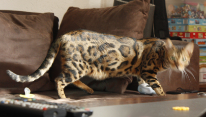 Amy ist unser Sonnenschein! Neugierig und mutig, dabei unheimlich anschmiegsam. Scheu ist für sie ein Fremdwort. Sie hat eine tolle Zeichnung mit klar abgegrenzten Rosetten. Wir sind sehr auf ihre weitere Entwicklung gespannt.